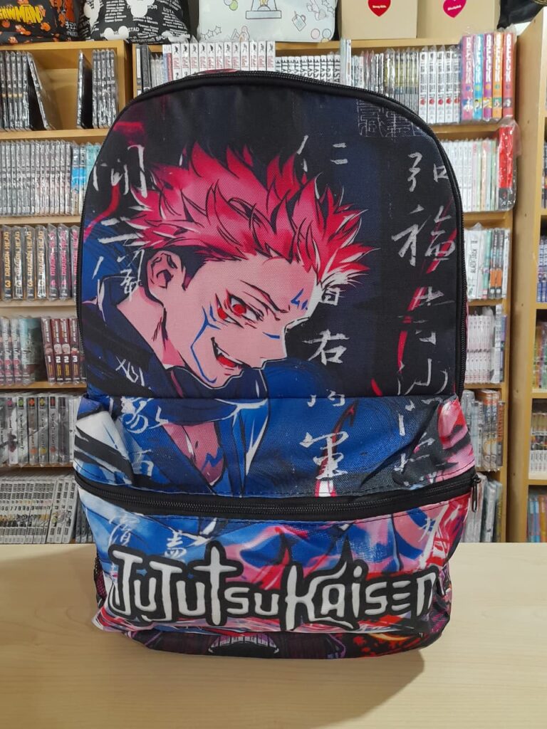 Sorprende a tus amigos con esta colorida mochila de tus personajes favoritos. En esta ocasión te traemos el modelo con estampado de JUJUTSU KAISEN SUKUNA. Cocida con hilo de alta calidad y terminaciones reforzadas.